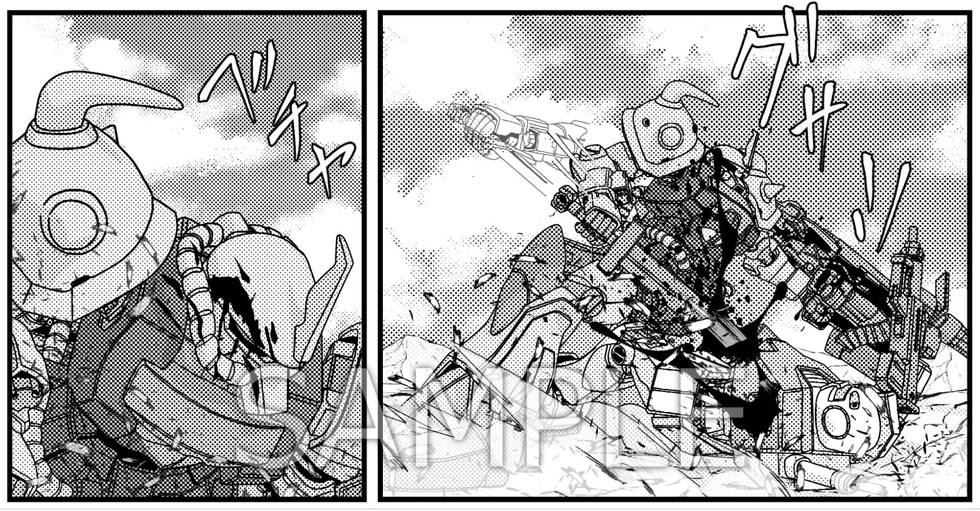 こういったことから、同人誌でグフカスタムをメインに描く際も、白兵戦になる内容で描いていく必要があります。中近距離射撃能力を向上させたと説明がある部分は、恐らくガトリングだと思うのですが、その武装で撃ち合う描写だと漫画として、物語としてグフカスタムの良さを伝えるのは難しいと思われる。